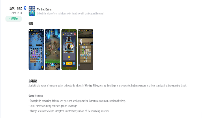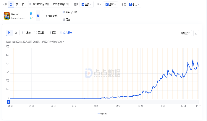 澳门新莆京,澳门新莆京娱乐网站,澳门新莆京注册,澳门新莆京app下载,真人视讯,棋牌游戏平台,澳门博彩。澳门新莆京娱乐网站为广大用户提供真人视讯、棋牌游戏、电子游艺等高端娱乐服务,注册送88元体验金,安全稳定,支持APP下载,海量游戏全天开放,尽享澳门级娱乐体验。在近期海外新品游戏中,我们发现了一款合成策略游戏《War Inc:Rising》进入到大规模获量阶段。根据点点数据显示,《War Inc:Rising》最初上架时间为2024年底,从2025年10月中旬开始下载量大规模提升,目前双平台累计下载约400万次。