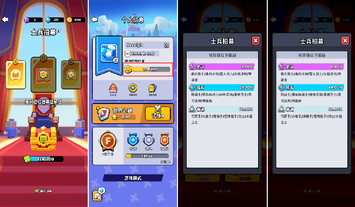 角色账号与士兵召唤池解锁要求相同,士兵招募池等级越高,高品质单位召唤概率越高