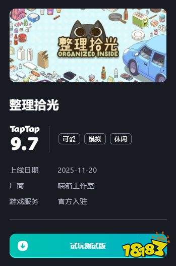 澳门新莆京,澳门新莆京娱乐网站,澳门新莆京注册,澳门新莆京app下载,真人视讯,棋牌游戏平台,澳门博彩。澳门新莆京娱乐网站为广大用户提供真人视讯、棋牌游戏、电子游艺等高端娱乐服务,注册送88元体验金,安全稳定,支持APP下载,海量游戏全天开放,尽享澳门级娱乐体验。TapTap电脑版- 精品DEMO免费体验- 测试版本抢先玩- 支持绑定Steam账号 点击免费下载 整理拾光(Organized Inside)是一款关于猫猫、热爱、转变和成长的慢生活收纳整理游戏。由Meox Studio开发制作,在这里玩家需要将杂乱摆放的日常家居物品一一整理、归类,在应对不断变化的生活体验的同时,通过整齐有序的空间收纳,逐渐探索生活的乐趣与意义。同时整理拾光游戏内为玩家提供了一千种你熟悉的物品将会出现在这里,你需要想办法把它们都合理地摆放在你喜欢的地方,并且这个游戏没有计时器,没有血
