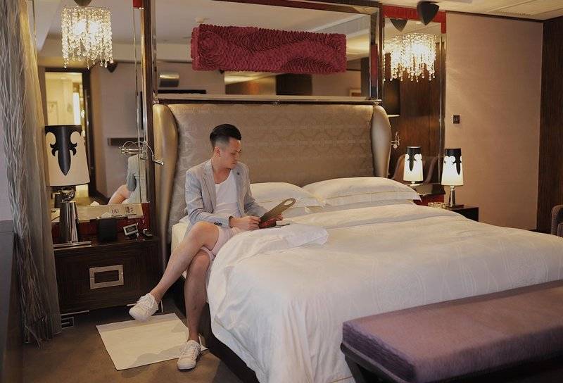 澳门新葡京酒店楼高达258米,采用的是上宽下窄的建筑设计风格,外形是一朵金莲花的形象,寓意“新生”。还没踏进酒店的大门,光看到这栋宏伟的建筑及金光闪闪的玻璃,就已经感受到这里满满都是高级感。