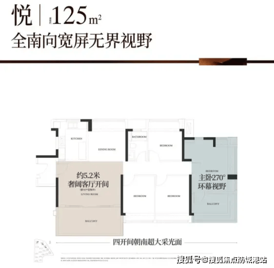 建面125-129㎡四房两厅两卫,主打紧凑实用,非常适合刚需改善家庭。户型设计方正,空间利用率高,主卧带有独立卫浴与衣帽间,保障了业主的私密性与舒适度。南向阳台连接客餐厅,让室内空间更加通透,采光通风效果极佳。无论是三口之家,还是刚有二胎的家庭,这个户型都能满足日常居住需求。