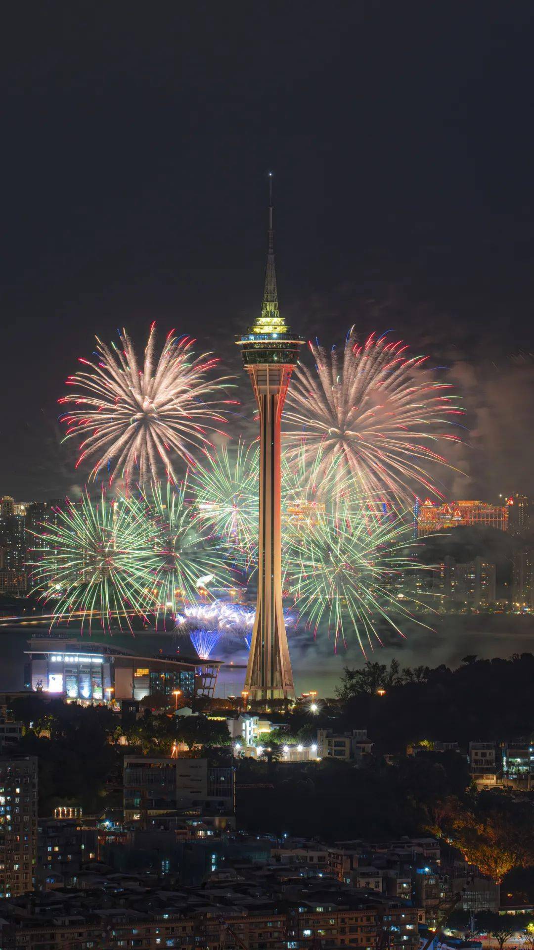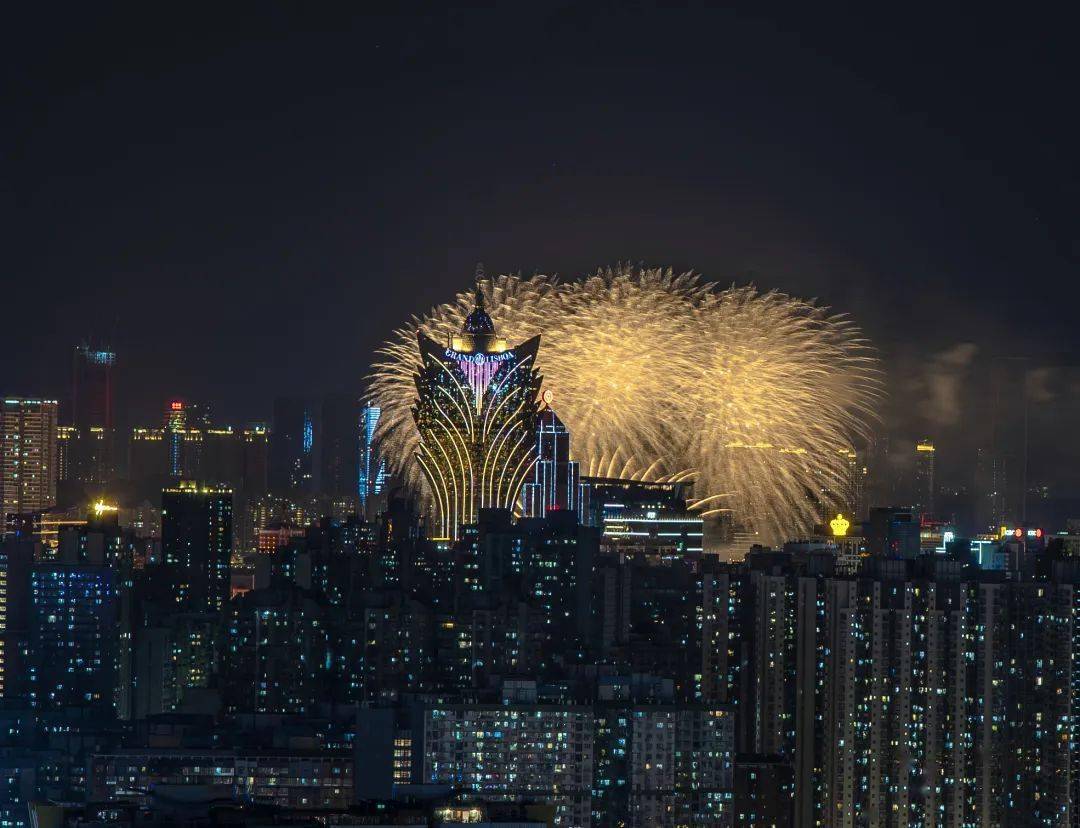 拍摄技巧:选择了在珠海拱北的一处高楼拍摄,这样能使新葡京跟澳门塔烟花都出现在画面中来。