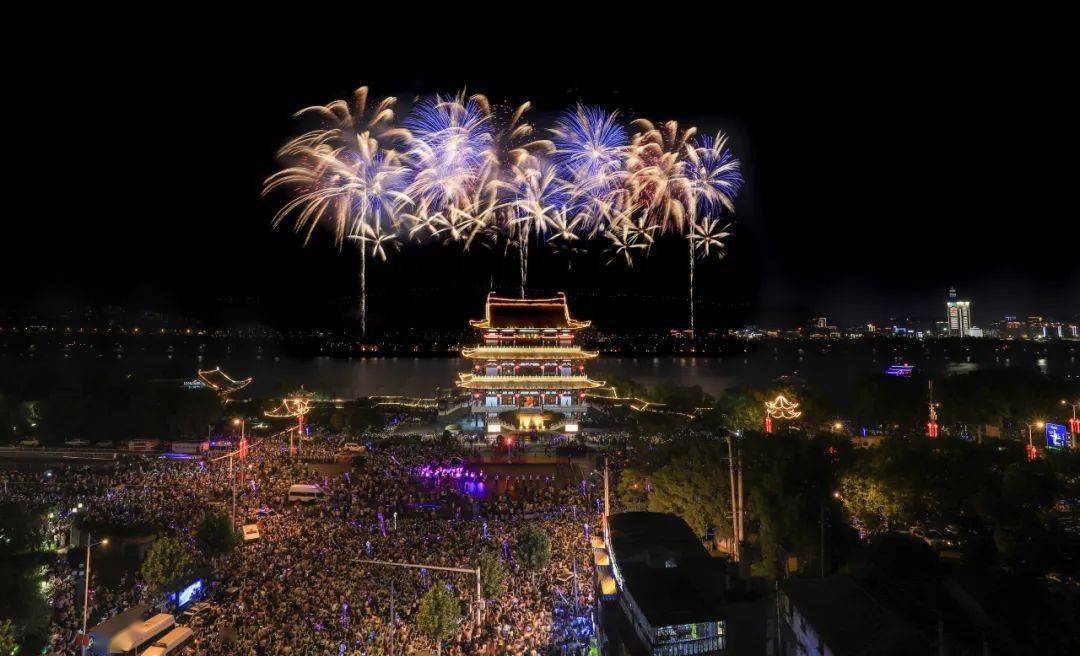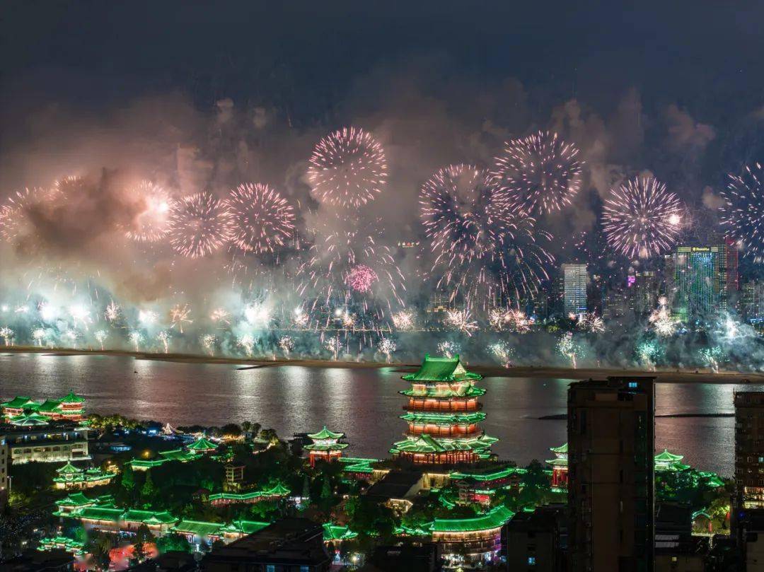 拍摄技巧:由于当天南昌地面机位人多不胜数,爬楼的机位抢不到,只能采用无人机拍摄,烟花开始前想好了用滕王阁这座历史建设地标来作为整场烟花的前景,拍摄时我想要整个画面有足够多的压缩感采用无人机了的3倍焦段来压缩拍摄。
