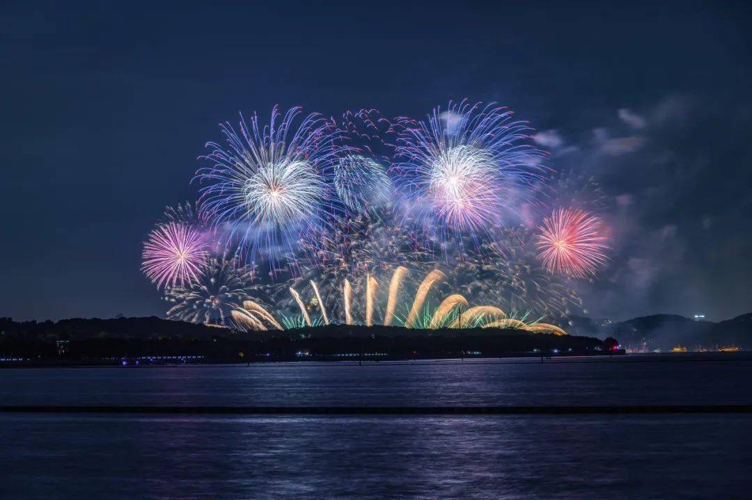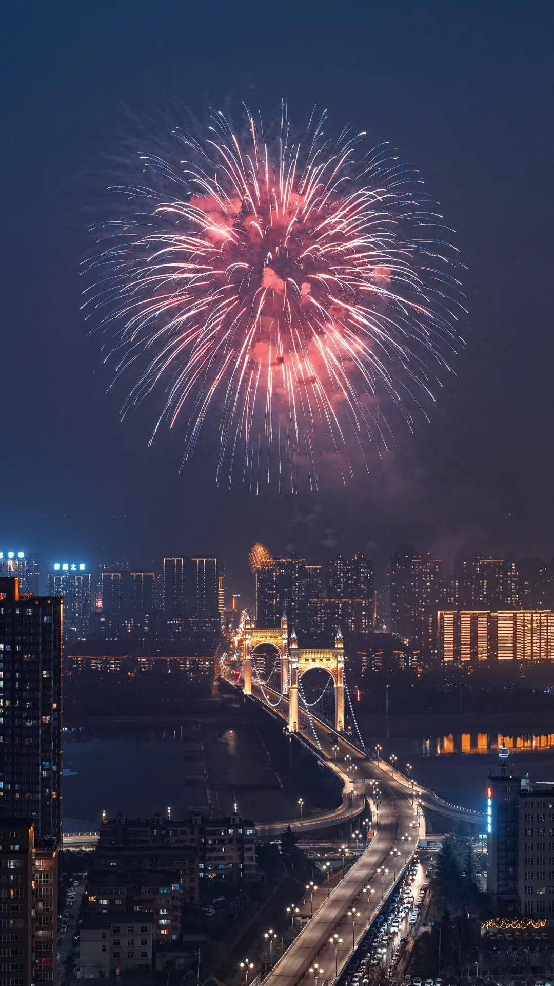 拍摄技巧:拍摄于蓝调时刻,曝光时间约2-3s为宜,可以拍到完整绽放的烟花。