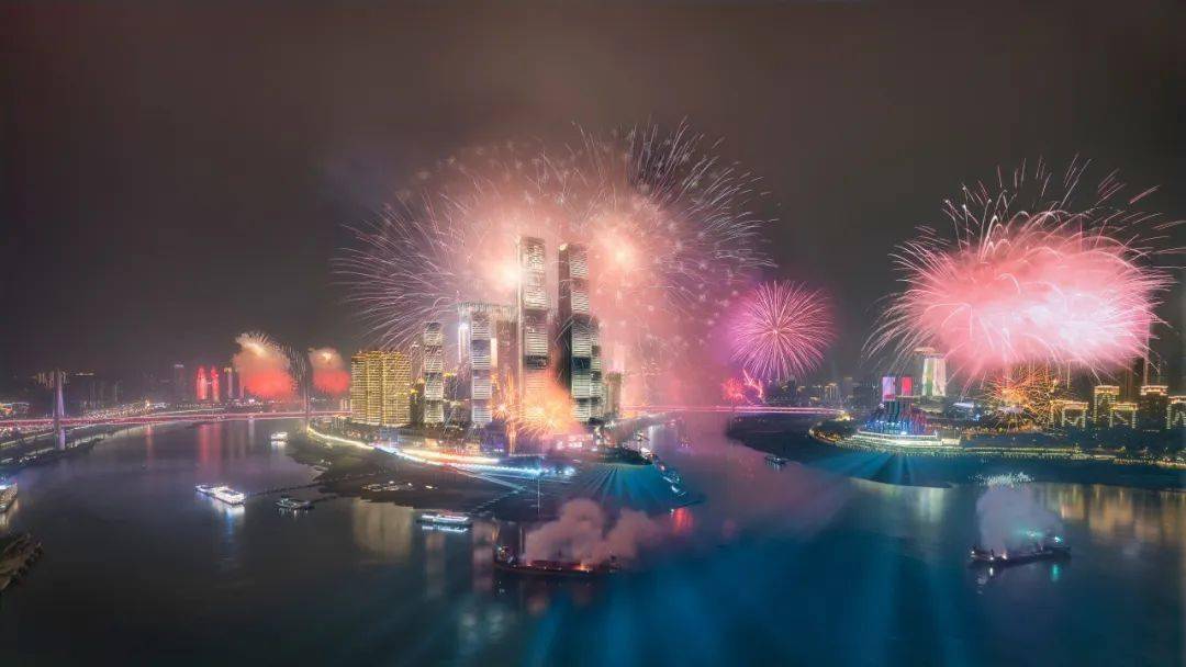 作品简介:2023年在朝天门广场两江交汇处,举办了隆重的烟花秀,迎接兔年的到来。多张图片堆栈合成。