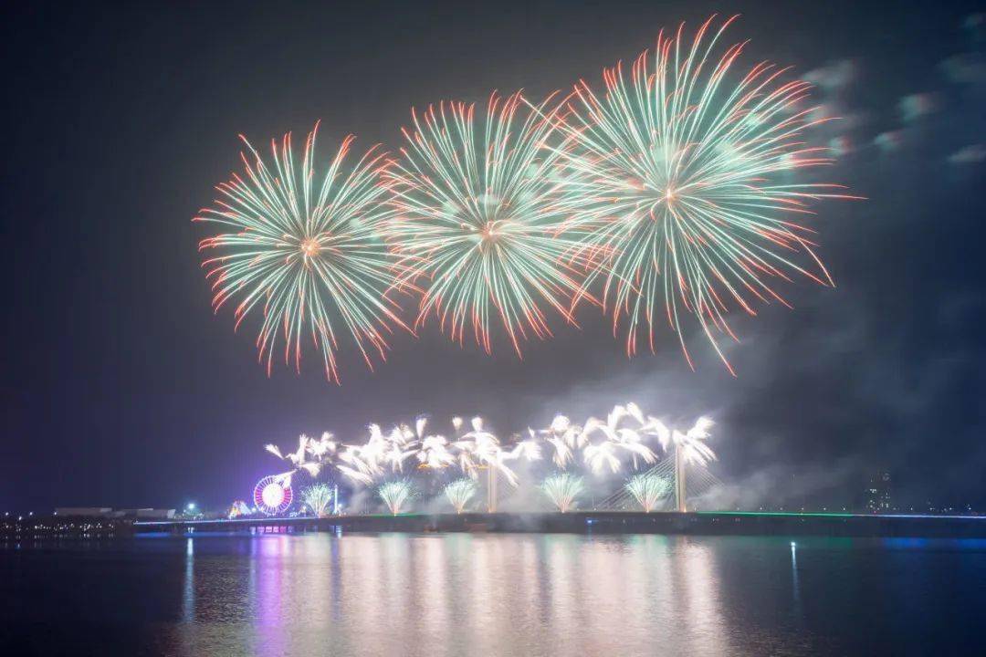 作品简介:澳门烟花节是由澳门特别行政区政府旅游局主办的“澳门国际烟花比赛汇演”始于一九。本照片拍摄地在横琴ifc停机坪,摄于9月23日,台风过后的珠海天空十分通透远处的日月贝也能清晰看到,我的位置不受烟的影响,最后拍下了这张带有澳门塔和新葡京的灿烂烟花。