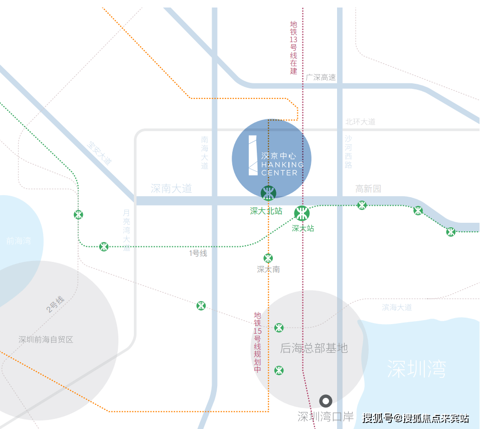 公共交通网络发达,深大北门附近公交线路等常规线路、369路等公交。地铁出行也十分便捷,1号线号地铁交汇,距离深大站约600米(步行约8分钟),同时规划中的15号线将与项目无缝对接。