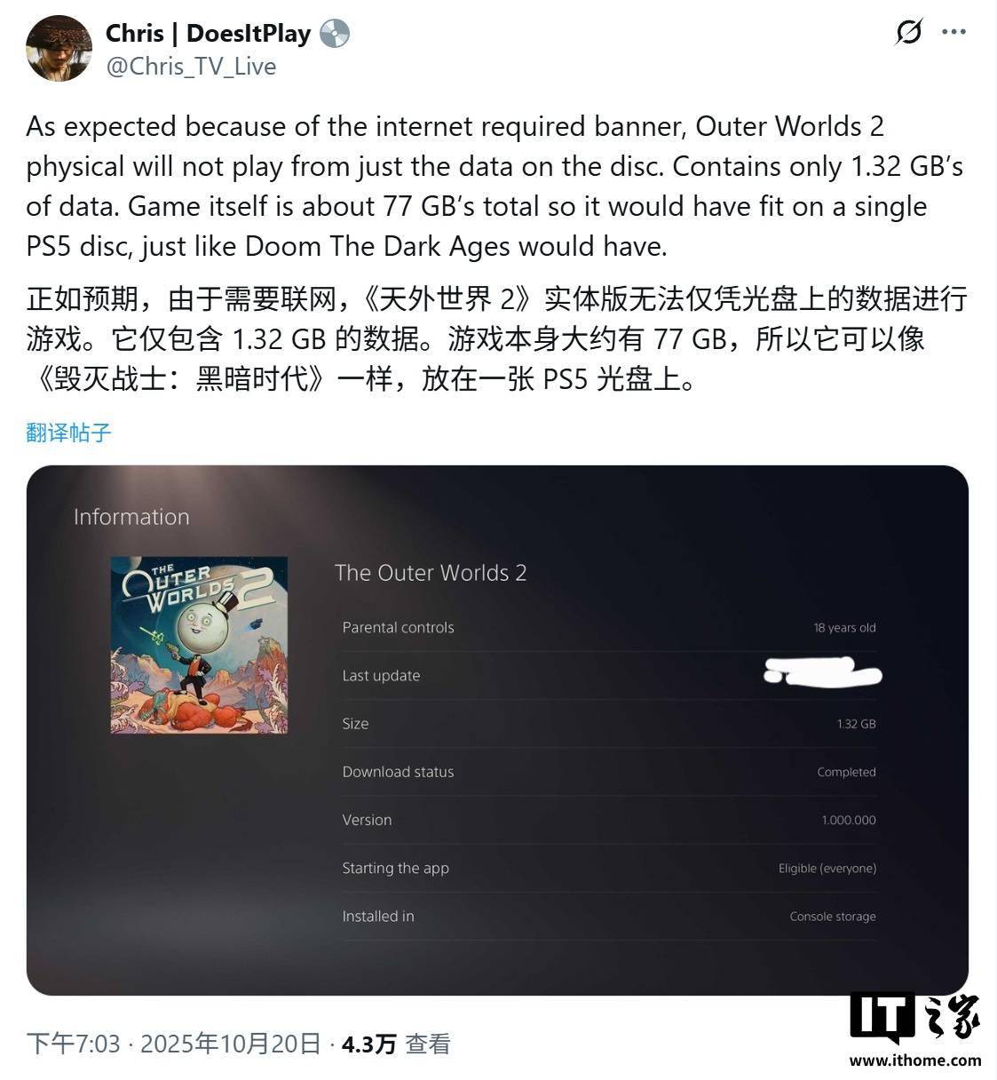 根据媒体 Push Square 的评论,这并非微软首次采取此类发行策略。事实上,在过去一年里,该公司发行的多款游戏都因类似的“空壳”实体版而受到玩家和收藏爱好者的批评,其中包括备受期待的《夺宝奇兵:古老之圈》和《毁灭战士:黑暗时代》。如今,《天外世界 2》也成为了这一争议名单上的新成员,加剧了外界对微软实体发行策略的担忧。