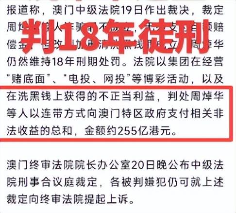 一审判决的时候,周炤华身上162项罪名成立,处十八年有期徒刑,赔偿86亿澳门元。